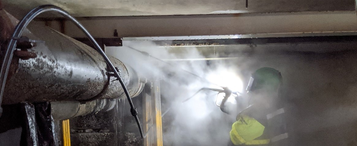 This project involved concrete remediation works, including hydro-blasting to remove spalling and unsound concrete, followed by shotcrete application and bar reinforcement.